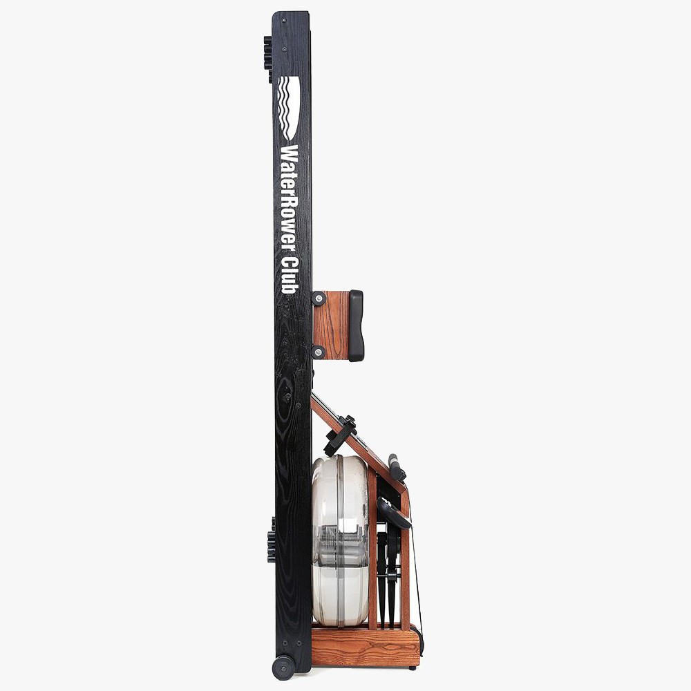 Fabricación Artesanal: Construido a mano con madera maciza de fresno americano, el WaterRower Club presenta un acabado en tonos oscuros y raíles negros, diseñado para resistir el uso intensivo en gimnasios, estudios y clínicas de rehabilitación .